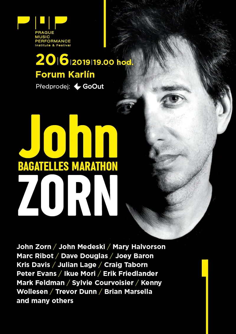 John Zorn během své dráhy vydal přes 200 alb a spolupracoval s mnoha umělci (např. Mike Patton, Lou Reed, Bill Frisell, Laurie Anderson, Thurston Moore, Pat Metheny a další). Zornův Bagatelles Marathon, který do Prahy přiváží mezinárodní festival a institut Prague Music Performance, se uskuteční 20. června 2019 od 19.00 ve Foru Karlín. Vstupenky jsou v předprodeji v sítích GoOut.