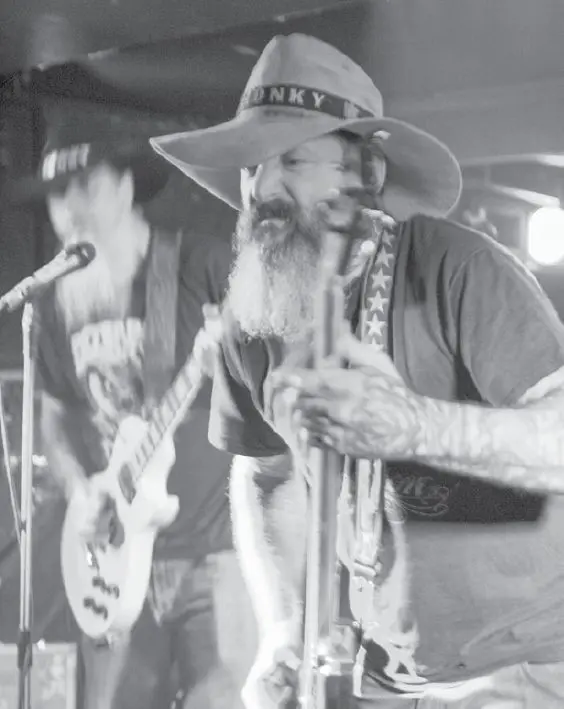 Tu první. Ale míchám country s jižanským rockem, trochu starých Skynyrd, ale je to tradiční country, jen hraju na banjo a kytaru. Máme výborného kytaristu, jenže přišel o prsty, tak hraje na basu, na kterou nikdy předtím nehrál, a je úžasný. Každej jsme odněkud jinud. Tvoříme perfektní partu. Je to legrace, občas nám dokonce zapomenou zaplatit, ale nestaráme se o to, nic moc neočekáváme, děláme to pro zábavu. Už jsme i nahrávali, jenže to budeme muset všechno přetočit, protože jsme vykopli předchozího bubeníka. Ale s Claudem to bude lepší. Je to skvělý bubeník.