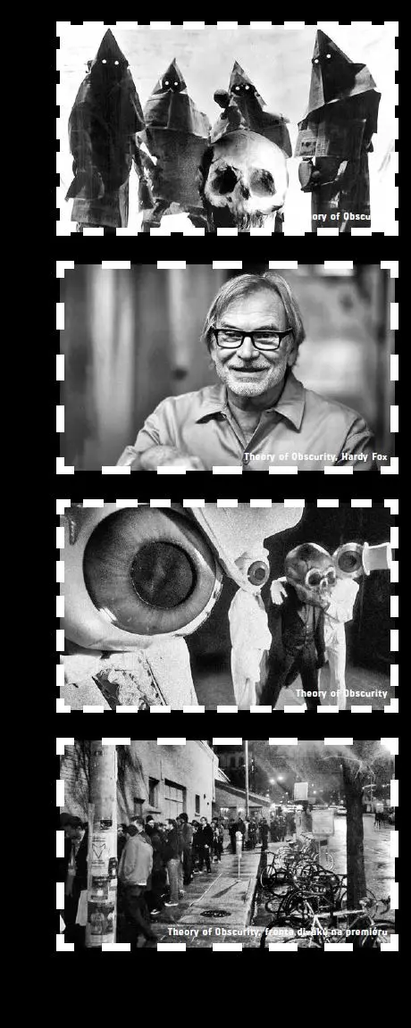 U jednoho z filmů je třeba se zastavit trochu více – Theory of Obscurity: a film about The Residents (režie: Don Hardy). Celovečerní dokument o jedné z nejdivnějších kapel „anonymních“ členů jsem očekával, a nejen já, mnoho let. Před časem se o podobnou věc snažila skupina filmařů ze společnosti Well Dang! Productions. Pečlivě připravovaný projekt ale museli opustit kvůli kombinaci nedostatku financí a neochoty členů kapely. O The Residents, pominu-li televizní záznam jejich představení Freak Show z pražského divadla Archa (1995) a jejich 42 vlastních videoklipů One Minute Movies, vznikl jen středometrážní satirický a poněkud mystifikační film The Eyes Scream: A History of The Residents (1991, režie: John Sanborn).