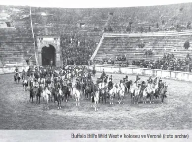Z Paříže putoval Divoký západ do Španělska a Itálie. Vidět indiána v Benátkách a zemřít, říkali si asi náhodní kolemjdoucí, kteří byli svědky vyhlídkové plavby „rudých přátel“ Buffalo Billa na gondolách. Zastávka v Římě znamenala další událost. Vzácní hosté se vyfotografovali uprostřed Kolosea, ale rozbít stan tam kvůli kamenitému povrchu nemohli. O tom, co následovalo, referovaly všechny světové deníky, včetně pražských Národních listů: