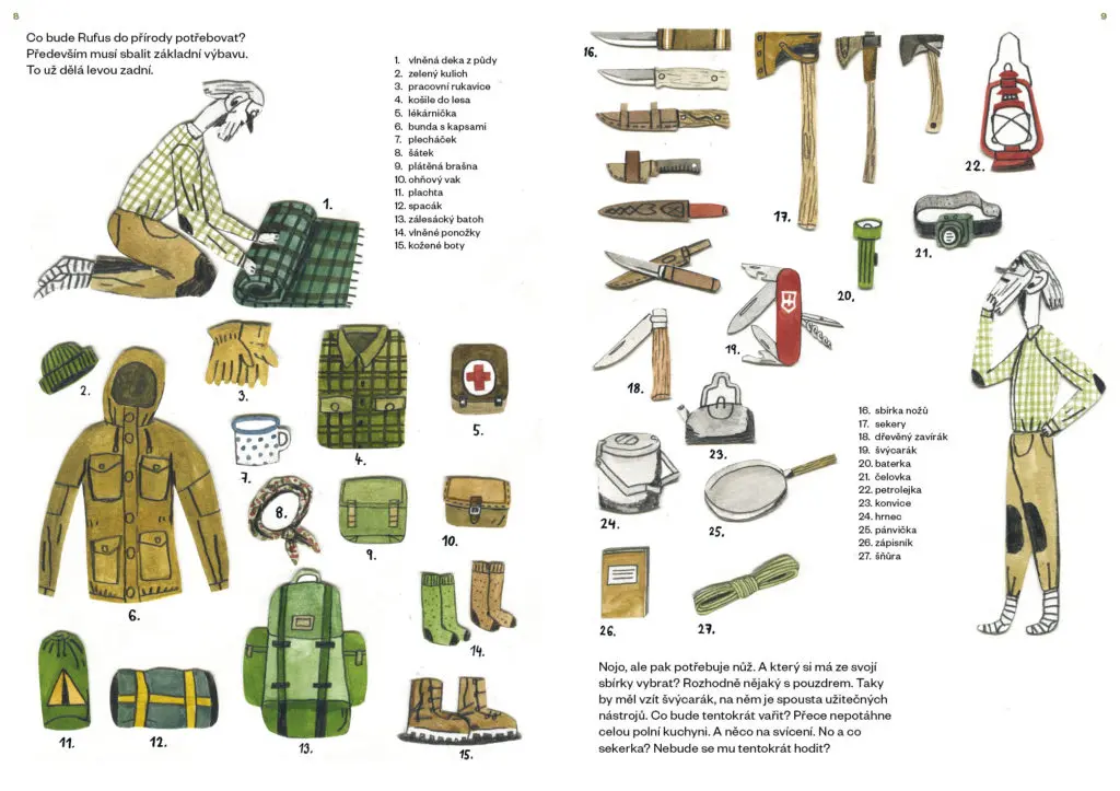 Rufus zálesák je především obrazová kniha pro děti, kterou namaloval a napsal David Dolenský a která právě vyšla v nakladatelství Baobab. Její titulní hrdina je dobrodruh všedního dne, jenž vždy koncem týdne začne být neklidný. Rozkládá mapy a kouká, kam by se vydal. A rufusovská kniha sleduje všechny jeho přípravy, včetně vymalovaných seznamů vybavení. A pak ho provází na jeho pouti. Dětský čtenář pozná nejen druhy seker a nožů, ale také hub, travin, ptáků, zvířat, vodních toků i způsobů, jak zavěsit nádobu nad oheň.