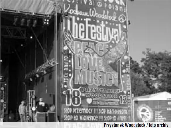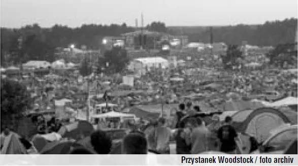 Przystanek Woodstock, zvaný polský Woodstock, je podle organizátorů největším open air festivalem v Polsku a jedním z nejmohutnějších na kontinentu. Letos se konal po osmnácté a vstup byl tradičně zdarma. U vchodu nejsou žádné kasy, žádné bariéry ani ploty, mezi stanovou metropolí a třemi scénami není žádný předěl. Festival má pověst akce bez ochranky. O pořádek se starají sympatičtí mladí dobrovolníci v červených tričkách s nápisem Pokojowy Patrol – mírová hlídka. Przystanek Woodstock navazuje na polskou charitativní sbírku Velký orchestr vánoční pomoci. Její výnos se používá na nákup lékařských přístrojů pro dětské nemocnice, a v korunách dosahuje každoročně stamilionových částek. Za devatenáct let konání prý sbírka přinesla zdravotnictví přes dvě miliardy osm set milionů korun. Samotný Przystanek Woodstock ale z prostředků Velkého orchestru peníze čerpat nemůže – závisí zcela na darech sponzorů. Vznikl jako odměna pro ty, kdo peníze vybírali, což bývá kolem sto dvaceti tisíc dobrovolníků. Publikum opravdu představuje všehochuť, například zdravotně postižené a osoby všech generací lze na polském Woodstocku potkat častěji, než tomu bývá na českých festivalech.