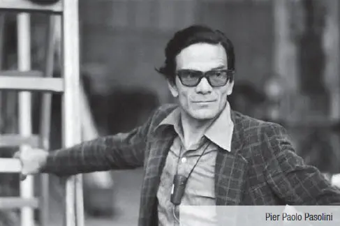 Pier Paolo Pasolini (5. 3. 1922 – 2. 11. 1975) byl italský spisovatel, básník, scenárista, filozof, sémiolog, režisér a herec. Studoval literaturu a historii na Boloňské univerzitě, kde po skončení 2. světové války absolvoval obor románské fi lologie a pak byl nějaký čas učitelem italštiny. V dětství často s rodinou cestoval, protože jeho otec byl důstojníkem italské armády. V roce 1942 se spolu s matkou odstěhovali na venkov do Furlánska na severovýchodě Itálie. Tam z plných plic nasál trpkost života místních rolníků, denně bojujících o holé přežití. Stále studoval jazyk – nejrůznější lokální odchylky, nářečí, intonace a hlavně „způsob myšlení“ v intencích rozdílných dialektů a jazykových variant. Ve furlánštině, východní rétorománské řeči, tady v roce 1944 napsal svou první divadelní hru Turci ve Furlánsku, jež nebyla za jeho života nikdy vydána ani inscenována. Se zkušenostmi z bojů furlánských rolníků o vlastní půdu, již jim chtěli bohatí zemědělští magnáti sebrat, a také po prostudování života a díla marxistického filozofa a zakladatele Italské komunistické strany Antonia Gramsciho nadšeně a s ideály vstoupil do komunistické strany. Mladý Pasolini nenáviděl svého vojensky akurátního přísného otce, čím dál více byl fixován na matku a postupně zjišťoval, že má homosexuální sklony. Nikterak se tím netajil. Nepovažoval to za nemoc. Komunisté měli z moskevské centrály jiné nařízení. V roce 1949 byl tedy (údajně) pro svou homosexualitu ze strany vyloučen. Pamětníci však vzpomínali, že tento výtečný rétor prostě a jednoduše „začal vadit“, neboť přímočaře dával najevo nechuť k bigotní ideologizaci mocichtivých a velkopansky se chovajících komunistických hlavounů.