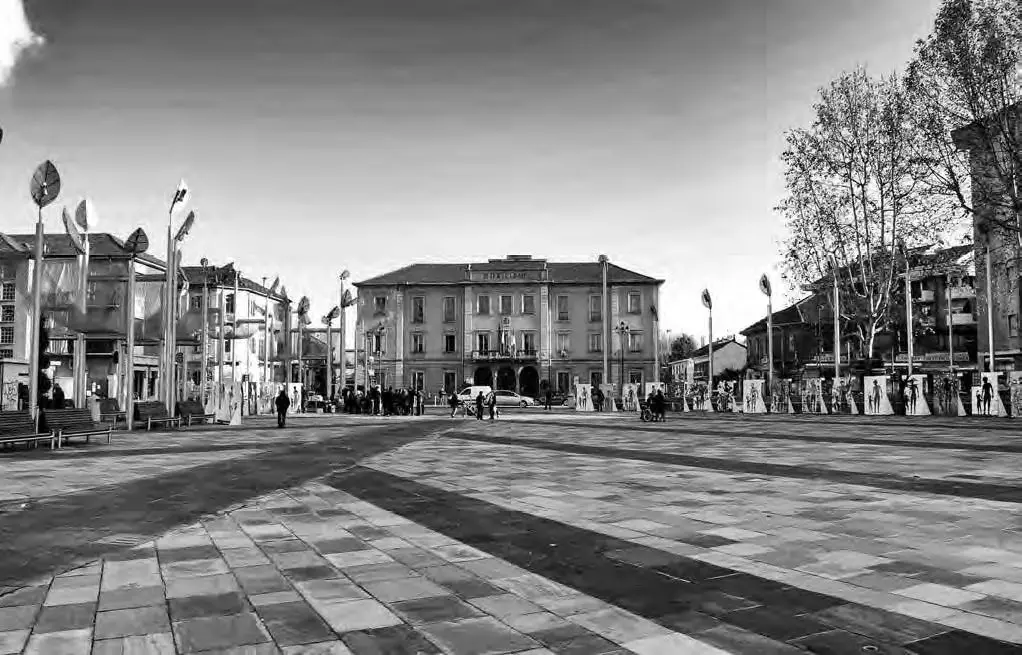 Není to planá metafora; život na až příliš rozlehlém náměstí se vskutku drží při zdi na způsob nesmělého dorostu, tlačícího se antagonisticky k palubkám až příliš nenasytného sálu okresního kulturáku, přičemž pizzerie, kavárny či bary se k sobě chovají stejně netýkavě jako kluci a holky, jež k sobě mají až příliš daleko, než aby jejich přirozená gravitace překonala odstředivost tohoto architektonického výbuchu. Místo se v tomto ohledu právem netěší vznešenému titulu náměstí, nýbrž zůstává largem, širým prostranstvím či písčinou křižovatky dominantní Via Ferdinando Paolieri.