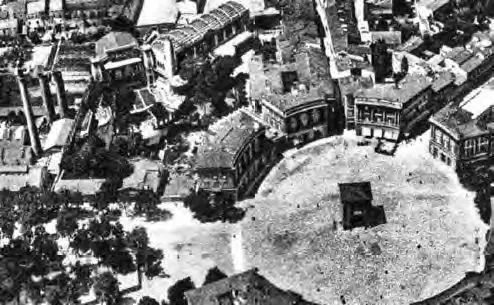 Divadlo a park Alhambra po levé straně Piazza Beccaria,