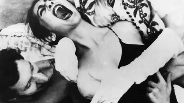 A také, jak pokračuje Michael Koresky, v sexu. „Sex je ve filmu Planoucí tvorové neoddělitelný od okázalosti; je to film, který se nese na vlnách osvobozující androgynnosti, vizuálně zaznamenané v líčení a kostýmech herců. Muži si nanáší falickou rtěnku v ,bezchybných liniíchʿ: ačkoli černobílý film nedokáže zprostředkovat ,čistou broskvovouʿ a ,šťavnatou třešňovouʿ rtěnku, barvy z plátna jen vyskakují, doprovázené podivuhodnými a poněkud nechutnými zvuky špulek. Country zpěvačka Kitty Wellsová z Grand Ole Opry z roku 1952 zpívá píseň It Wasn’t God Who Made Honkey Tonk Angels, která je kontrapunktem ke scénám, v nichž se tyto skotačivé démonky upravují a kroutí (,Chlapi, co byli tolikrát ženatí a pořád si myslí, že jsou nezadaní. Je škoda, že všechna vina padá na nás ženyʿ). Od této chvíle je vše stále intenzivnější, jako bychom se pečlivě připravovali na zvěst století: bradavky hnětené v detailním záběru, šaty nešetrně vyhrnuté nahoru, aby hrubě odhalily genitálie, osahávání, které překračuje hranici – pokud vůbec nějaká hranice existuje – do jakési primitivní scény znásilnění, umocněné uši rvoucím, překrývajícím se jekotem na soundtracku. Hedonismus mutuje do upírského, téměř kanibalského chování, a jak se kamera chvěje a třese, začínáme mít pocit, že se účastníme orgií uvnitř tornáda.“