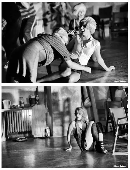 One man show Ondřeje Lipovského s ozvláštňujícím titulem Černý Karkul jsem absolvoval cca od třetiny již uplynulého. Nepřišel jsem pozdě, ale odmítl jsem se zúčastnit performance vestoje případně vsedě na zemi (moje nohy už na to zkrátka nemají). Kurátorka festivalu mě přemluvila, abych se na akci vrátil a obstarala mi sezení na židli poněkud stranou interaktivní produkce. Performer, oděný v bizarní pohádkový kostým (něco mezi černokněžníkem a pážetem) vyprávěl kvazimytologická moudra a účastníky akce, cca pětadvacet přítomných (mezi nimiž byli i významní publicisté Nina Vangeli, Vladimír Hulec, Jan Rejžek), aktivizoval k meditativnímu posezu i polehu, sešíval jim kabáty nití, se svíčkami pak všichni působili na visící kusy ledu, z nichž část s rachotem padala. Tyto momenty nepostrádaly poutavost a měly rysy docela sympatického rituálu. Lipovský akci prokládal vyprávěním o tom, jak duch opouští tělo při lehu na zádech a jak zase při lehu na břichu, sám pak v jakémsi pohybovém záchvatu, připomínajícím ten epileptický, ale mnohem, mnohem delší, bojoval s hrozivě vyhlížejícím nožem a jablkem, které při této exhibici rozsekl zcela přesně na dvě poloviny. Zmítal se také na peřině, kterou rozcupoval, a ona obsahovala podzimní spadané listí. Nakonec se s účastníky akce vyfotografoval. Nebyl jsem in, jenom jsem přihlížel, takže moje dojmy nejsou v tomto ohledu hodnověrné, ale ačkoliv mě jako nezúčastněného akce příliš neuchvátila, přece jen jsem v ní cítil větší procento emoce než u brněnských.