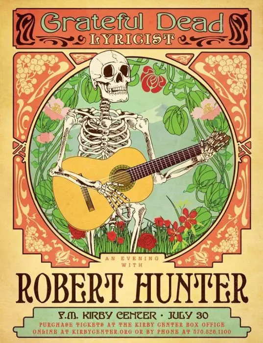 Další kalifornský rodák byl předurčen k tomu, aby se stal básníkem, už svým jménem. Uznejte, že když někdo přijde na svět jako Robert Burns, nezbývá mu nic jiného než důstojně kráčet ve stopách legendárního skotského barda, jenž byl ostatně Hunterovým prapra… něčím. Robertem Hunterem se kluk z rozvrácené rodiny stal poté, co se jeho matka znovu provdala za Normana Huntera. Ten pracoval v nakladatelské branži a Robertovi dal pár prvních rad ohledně psaní. Předtím však chlapec prožil neveselé dětství. Tátu alkoholika naposledy viděl, když mu bylo sedm. Následujících několik let strávil v pěstounské péči, než si ho máma zase vzala k sobě.