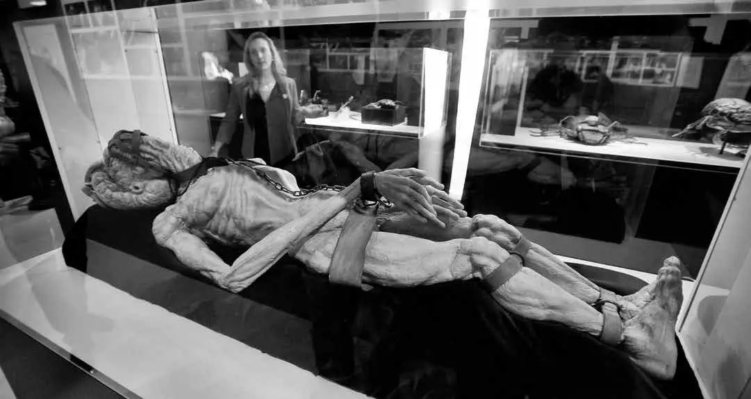 S výjimkou Mrtvé zóny se pak v Cronenbergových filmech soustředí, až zhmotňuje zvláštní chlad, odtažitost, jakási existenciální tíseň. Ale možná to není jen příznak jeho filmografie. Stačí vzít k ruce černobílé fotografie, které pořídil v Torontu na přelomu šedesátých a sedmdesátých let Viktor Kolář, a dojem je stejný: inscenované tváře i kulisy a nad hlavou šedá propast nebe. Nicméně Cronenberg ten chlad vyvažuje různými konfiguracemi komiky. Jestli zkraje kariéry sázel jasně na absurditu, dnes pěstuje spíš (lehce škodolibou) ironii. Pražská výstava má jako logo Mouchu (1986) a v titulu „evoluci“. Vývojově, lineárně pojatá přehlídka filmových rekvizit, fotografií z natáčení, smyček s klíčovou scénou atp. sází jen na výše zmíněné osvědčené kusy. Ty byly pro toho, kdo má zájem, snadno dostupné samozřejmě dávno před výstavním projektem. Pokud tedy výstavu, pak z méně známého okraje. V sedmdesátých letech točil David Cronenberg hodně pro televizi, existují dokumenty i monografie o jeho filmech, jsou tu knižní předlohy některých jeho děl, je tu Konzumárium. A jsou jiné možnosti zpracování než evoluce. Třeba příště.