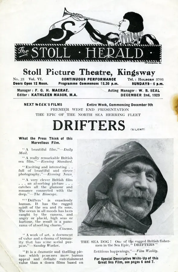 Jako Orson Welles proměnil Hollywood a dal mu nový způsob filmového vyprávění, tak John Grierson (26. 4. 1898 – 19. 2. 1972) má klíčovou zásluhu na tom, jak se dnes dokumenty točí. O více než půl století předjal svým jediným autorským filmem Drifters (1929) zásadní filmařské směry cinéma vérité a direct cinema. Zaznamenaná skutečnost vystavěná do dramatického příběhu, reálný rozhovor, postsynchrony, smyčky a vícevrstevný zvuk – to vše patří k základním prvkům, které Grierson vymyslel a zavedl.