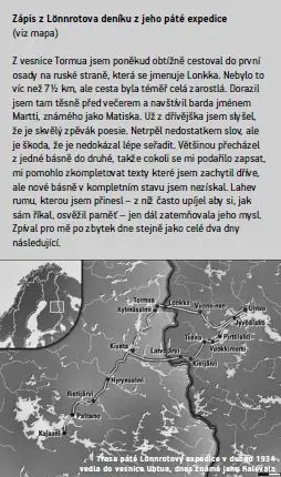Lönnrot neměl mapy, řídil se jen radami místních, kteří znali nejbližší okolí. Když se tedy dostal do další vesnice, zeptal se znovu. Velká část Kalevaly pochází z poměrně malého území. Jedná se o severní část ruské Karélie, které Finové říkají podle místní řeky Viena Karelia. Finská literární společnost Lönnrotovi poskytla stipendium, takže měl ruble a zpěvákům platil. To bylo důležité – když žijete na venkově, je pořád co dělat. Pokud se tedy Lönnrot zeptal, máte čas mi zpívat, dozvěděl se jak dlouho a co za to.