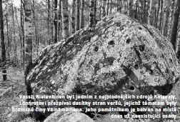 Další zastávka je u zaniklé vesnice nad dalším jezerem. Cesty na druhý břeh se účastní jen ti nejodvážnější, prodírají se po ramena vysokou travou a nasedají na člun. V lese stojí obrovský balvan, památník barda jménem Vassila Kieleväinen, který vytvořil finský architekt Martti Aiha. Kámen symbolizuje pevnost i pohyb, leží totiž ve svahu a jen silný strom mu brání, aby se neskutálel do jezera. Vassila byl jedním ze tří nejplodnějších zdrojů Kalevaly, Lönnrotovi přezpíval desítky stran veršů, jejichž tématem byly hrdinské činy Väinämöinena, který se později prý stal předlohou Gandalfa z Pána prstenů.