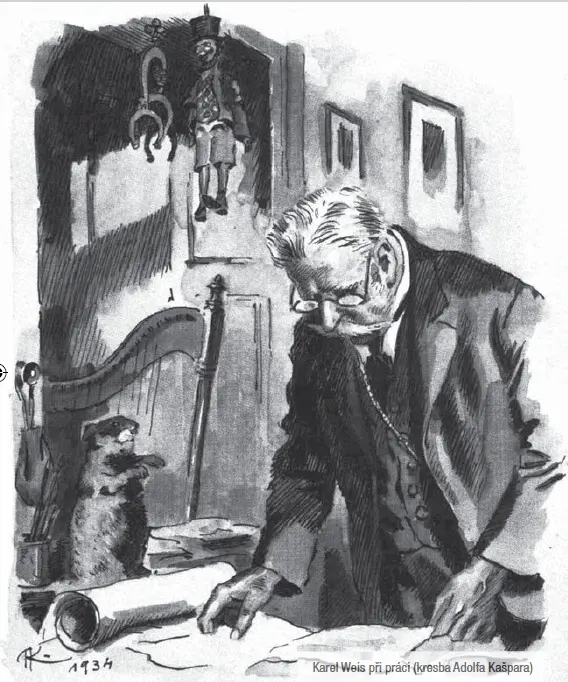 Kvůli této zcestné představě mu ve „Zlaté kapličce“ odmítli uvést další operu s názvem Polský žid. Nové německé divadlo (dnes Státní opera) ji zase nechtělo hrát, protože skladatelem byl Čech, a tak se stalo, že kolem Polského žida vypukla aféra, která utichla, až když dílo sklidilo zasloužené ovace v Metropolitní opeře v New Yorku. Asi i od těchto negativních vibrací si Karel Weis jezdil odpočinout do Plané nad Lužnicí (místa, které si oblíbil i Franz Kafka). Jednoho dne ho osud zavál do nedalekého Veselí, kde – doprovázen ředitelem kůru Kultem, medikem Schmausem a učitelem Prunerem z Tábora – sledoval dělostřeleckou šajbu (přehlídku spojenou s pálením naostro). Zbytek je historie, jak ji sběratel sám zaznamenal: