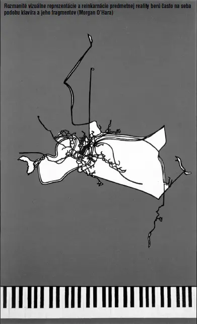 ito držiaca posledný akord oslobodzujúceho halali. Predmetná realita nadobro zmizla z výtvarných diel a len z času na čas sa náznakovo objavuje v členitých meandroch umeleckého diskurzu, samozrejme značne modifikovaná. Kandinského bezpredmetná forma používala ako barličky pre svoj duchovný obsah jednotlivé prvky klavírnej mechaniky. Z hľadiska harmónie je Beethovenov klavír predsa len dokonalejší než Orfeova lýra, a tak niet divu, že ju postupne vytlačil aj z ríše metafor; práve tu väzia korene vačšiny koketérií s ‚farebnou‘ hudbou. Vizuálne i akustické predispozície klavíra sú pre synestéziu ako stvorené. Veď už Roger Fry tvrdil, že za emócie, ktoré v nás vizuálne umenia vzbudzujú, vďačíme „hlavným klávesom niektorých našich kladných fyzických potrieb.“