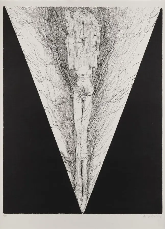 Křesťanská symbolika nanebevstoupení je silně přítomná v grafickém listu Palach od Jana Koblasy. Koblasa byl jedním z nejoriginálnějších autorů české scény od druhé poloviny padesátých let; v jeho díle jsou přítomny jak silná existenciální poloha (daná intenzivním přátelstvím s Mikulášem Medkem), tak groteskní prvky, které nezapřou jeho členství ve skupině Šmidrů, důležité sestavě tzv. české grotesky, kam patřil mj. Karel Nepraš nebo Bedřich Dlouhý. Koblasův Palach je vkomponován do symetrické sestavy, hořící, do výše stoupající figura je umístěna do bílého trojúhelníkového pole, přísně odděleného od temného pozadí, od nicoty. V symbolické rovině reprezentuje trojúhelník duchovní hierarchii, zde postavenou na špici, jako by větší část hořícího už patřila nebesům. Kříž odkazující k mučednictví se objevuje i v obrazu Rudolfa Sikory, v té době jenom o málo staršího než Jan Palach. Jeho Múr, jedno z nejlepších děl jeho raného období, zachycuje tělo či duši vznášející se na nebesa. Ke křesťanskému pojetí mučednické smrti má blízko i téma oběti, jak ji v abstrahované, expresivní formě ztvárňují Miroslav Netík a Rudolf Fila. Obě plátna jsou uměleckou metaforou nejvyšší oběti, oběti krve. Jim blízko stojí i pozoruhodné Tváře Karla Svolinského z roku 1970. Tento výtvarník, známý rozsáhlou ilustrační tvorbou a zejména návrhem na olomoucký orloj provedený v duchu socialistického realismu, se ve své pozdní tvorbě obrátil k existenciálním i náboženským tématům; expresivní tváře jsou toho výborným dokladem a později je využil pro novozákonní obrazy realizované pro některé moravské a české kostely.