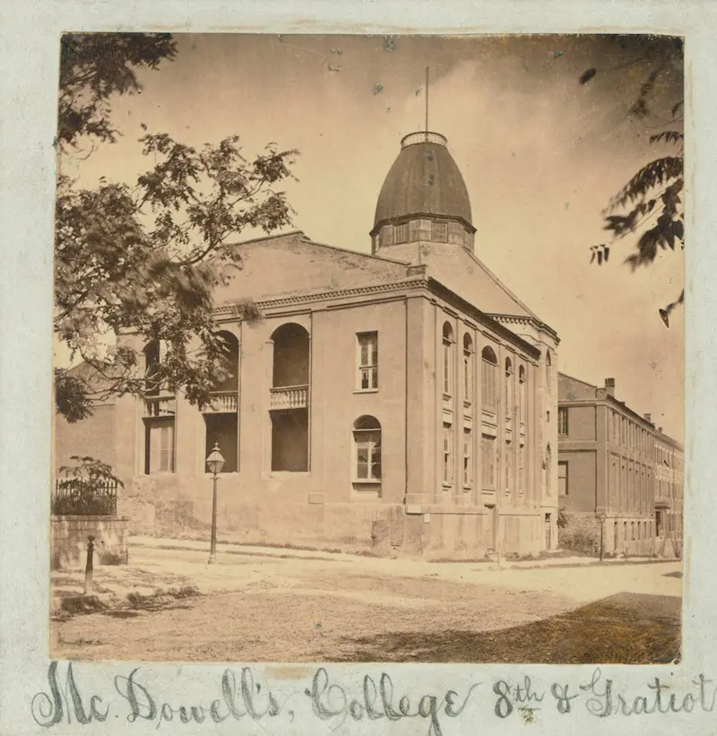 Joseph Nash McDowell pocházel ze státu Kentucky, kde vystudoval lékařskou školu s příznačným názvem Transylvania University. Narodil se roku 1805 a do St. Louis v Missouri se přistěhoval v roce 1839, tedy ve čtyřiatřiceti, kdy už měl za sebou praxi ve Filadelfii a Ohiu. Rok nato zakládá spolu s dalšími čtyřmi saintlouiskými lékaři fakultu při vysoké škole Kemper College. Šlo o první lékařské kurzy na západ od řeky Mississippi. Fakulta původně sídlila na rohu ulic 9th Street a Cerre. Roku 1845 byla Kemper College uzavřena a fakulta přešla pod Missourskou univerzitu. V té době pro ni McDowell začal v St. Louis na křižovatce ulic 8th Street a Gratiot stavět zvláštní novou budovu ve tvaru osmiúhlého nedobytného hradu. Pod Missourskou univerzitu patřil ústav dalších deset let, pak se osamostatnil a vešel ve známost jako Missouri Medical College. McDowellovy převratné anatomické kursy mimo jiné položily základy dodnes fungující Washington University School Of Medicine, která byla založena až po jeho smrti, v roce 1891.