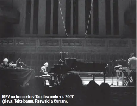 Přístup k nekompromisní poetice seskupení má usnadnit až průřezově koncipovaný čtyřdisk s nekrácenými záznamy osmy seancí ze všech čtyř desetiletí jeho existence. Pod názvem MEV 40 jej loni vydala americká značka New World Records a svůj ediční počin opatřila výpravným bookletem s bohatou fotodokumentací. Kolem kmenových autorů Alvina Currana, Frederica Rzewského a Richarda Teitelbauma na nahrávkách osciluje řada stálejších i příležitostných spolupracovníků – Allan Bryant, Garett List, Ivan Vandor, Karl Berger, Steve Lacy, George Lewis a další. Velkorysý výběr sahá od raného kusu Spacecraft, který dominoval západoevropskému turné souboru na podzim 1967 (zde je raritní verze s hostující sopranistkou Carol Plantamura, předvedená na koncertu v berlínské Akademii umění), až po nahrávku z vystoupení na proslulém festivalu v Tanglewoodu v massachusettském Lenoxu v létě 2007, jedinou pouze v obsazení zakladatelského tria. Schválně jsem si pustil nejdříve první, nejstarší kus alba a posléze poslední, nejmladší. Jestliže první kus je názornou demonstrací „formy hudby bez formy“ – avantgardního konceptu, jenž ve stejnojmenném manifestu z téhož roku slovně zformuloval Rzewski, nejnovější kus Mass. Pike je zřídkavým důkazem, že originální duch avantgardy nemusí vyprchat ani po čtyřech desetiletích či zdegenerovat v levných technokratických řešeních a repeticích. Stačí si porovnat nástrojový park hudebníků MEV z obou období a posluchač získá jasnou představu, jak se od samých počátků v kreacích souboru snoubily brikolérská vynalézavost a DIY estetika s invenčním aplikováním nejnovějších technologických výdobytků aniž by v jeho poetice utrpěly tradice a avantgardní řešení.