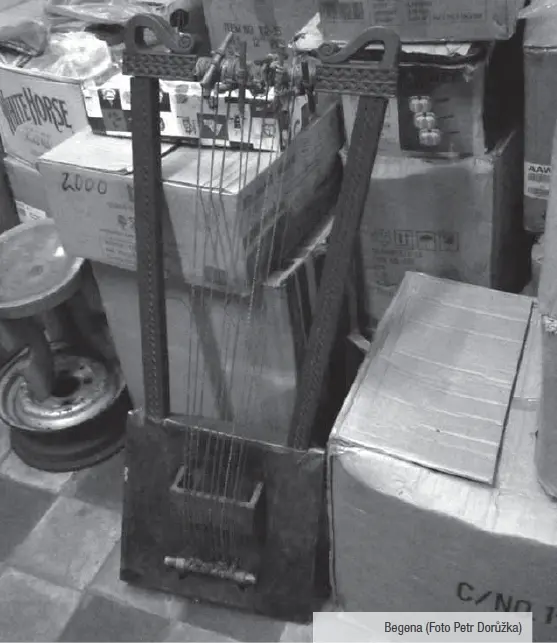 Lyra begena ovšem nedoprovází bohoslužbu, ale modlitby, často v rodinném kruhu, a její zvuk je daleko intimnější. V době stalinistické diktatury Derg, která v Etiopii vládla v letech 1974–1991, se begena stala ohroženým nástrojem, a o její návrat se přičinil Alemu Aga, dnes největší kapacita v oboru. Ten sice na festivalu, který byl tématem předešlých dvou částí cyklu, nevystupoval, ale rozhovor s ním se stal jednou z priorit etiopské hudební expedice. Schůzku nakonec dojednala kolegyně z Bavorského rozhlasu: znala hodinu i ulici, s tím, že na obchod s domácími potřebami, který Agovi slouží jako alternativní zdroj obživy, se snadno doptáme. Což se nakonec podařilo, i když obchod neměl ani štít, ani výlohu: jednalo se o sklad, naplněný ledničkami, kuchyňskými roboty i levným zbožím z Číny, mezi nímž se tísnily desetistrunné lyry begena různých velikostí, i drobnější a snáze přenosné nástroje podobné konstrukce, známé jako krar. Ty ale bývají na rozdíl od sakrální begeny považovány za ďáblův nástroj, neslouží totiž k doprovodu modliteb, ale k zábavě, elektrifi kovaný krar je dnes typickou součástí mnoha etiop ských tanečních kapel. K vidění byly i unikátní kuriozity: zatímco tradiční krar má ozvučnou skříňku ze dřeva či z želvího krunýře, Agův depozitář obsahoval i verzi s miniaturním smaltovaným umyvadlem. Ze všeho nejvíce fascinující byly struny begeny: tlusté provazce, vydávající zázračně hluboké vibrace, jemně a nepopsatelně se vlnící v čase, jako by zvuk procházel rotujícími reproduktory leslie. Akustickou manipulaci způsobují ve skutečnosti proužky kůže, vložené mezi struny a kobylku, i rezonanční struny. K hraní melodie slouží totiž jen šest z celkem desíti strun, a čtyři zbývající dobarvují zvuk svojí rezonancí. Hráč tedy užívá ukazováčky k vybrnkávání melodie, a zbývajícími prsty dle potřeby stlačuje a tím dolaďuje rezonanční struny. Alemu Aga zahájil interview krátkou ukázkou, kterou pak uvedl jako nejvýznamnější modlitbu praktikovanou pravoslavnými věřícími v Etiopii.