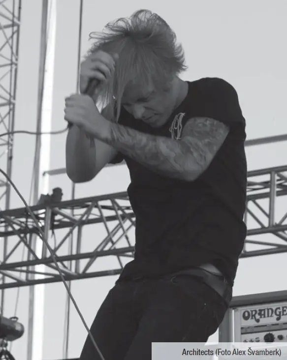 Brightonští Architects, kteří vystoupili na letošním festivalu Rock for People, patří k předním představitelům silné vlny britského post hard core a metal core. V něčem je tu paralela s punkem, který patří k praotcům tohoto žánru. Nemelodická agresivní hudba dokáže přilákat na koncerty tisíce diváků, i když ji velká média zcela ignorují. Texty kapely přitom jsou stále političtější a i na pódiu zpěvák vzkazoval lidem, aby nevěřili, co se píše v médiích, a dali na vlastní úsudek. Ta nedůvěra a odstup se projevila i v rozhovoru s Tomem Searlem, do něhož občas vstoupil i zpěvák Sam Carter.