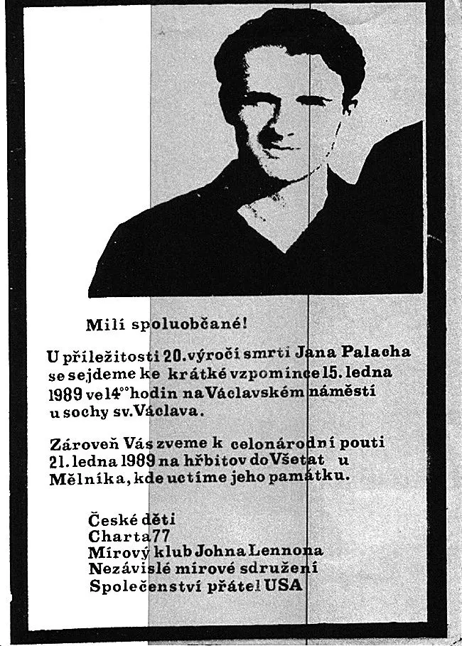 V sobotu 14. ledna 1989 se v pražské Sportovní hale konal Koncert pro Arménii. Vystoupily tu i léta zakázané kapely jako třeba MCH Band. Hned druhý den v neděli 15. ledna začal tzv. Palachův týden. Po dvaceti letech hrdinský čin sebeobětování Jana Palacha dozrál naplnění. I přes brutální zákroky policejních složek došlo k masovým demonstracím předznamenávajícím konec totalitního režimu. Na Václavské náměstí v Praze po celý týden přicházeli lidé právě v Palachově věku. A hlavně – nenechali se zastrašit. Chápali a věděli, kam Jan Palach svou trýznivou obětí mířil.