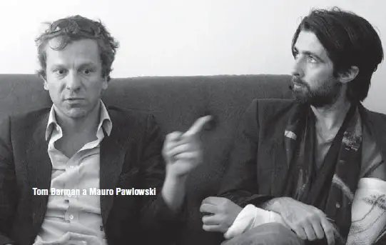 Před pražskou zastávkou jsme k posezení s frontmanem Tomem Barmanem a kytarisou Maurem Pawlowskim přizvali i členy domácích kapel Houpací koně a Bez peří, 7_06_O_cem_to_mluvime1kteří se ke své lásce k hudbě dEUS s oblibou hlásí. Profesionální poskytovatel rozhovorů Tom se svým zakouřeným hlasem hlásil o slovo zdaleka nejvíc, zatímco poněkud zádumčivě působící Mauro si osahával gyps zpevňující zlomenou ruku. Pro kytaristu krapítek prekérní situace…