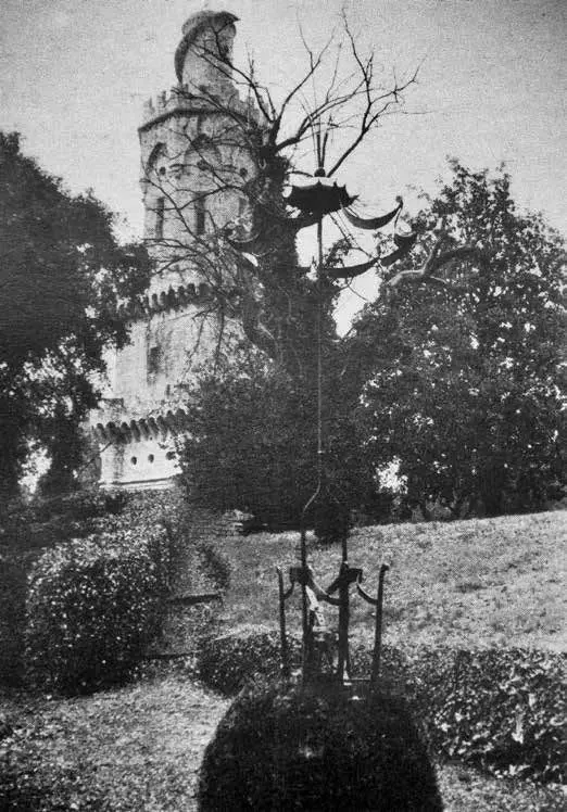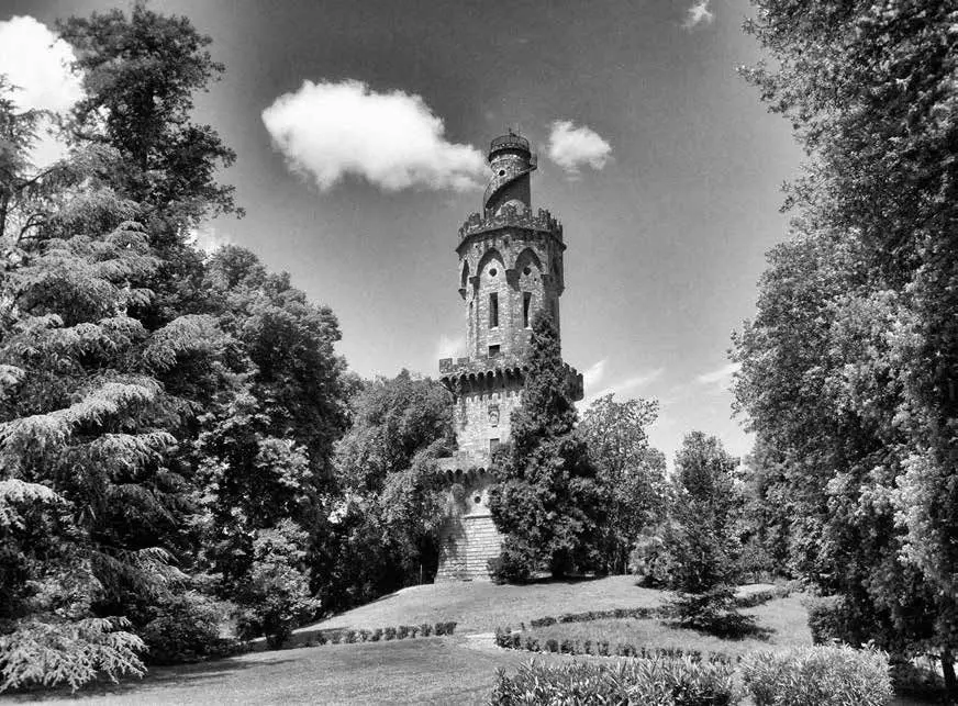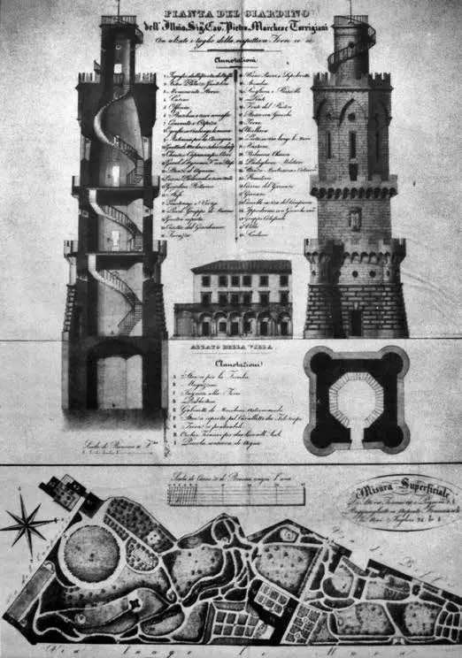 Ne nadarmo se uzavřený a do sebe pohroužený park podvoluje pouze dvěma ambasádám cizích mocností: rodinné hrobce a neogotické věži na nejvyvýšenějším místě parku, jejíž spirálou vedoucí na otevřenou terasu se symbolická životní cesta zahradou plné okultní symboliky završuje. Je vlastně příznačné, že enkláva vrcholí právě touto kamennou Ládínkovou raketou, blízkou sousedkou o něco starší observatoře La Specola. Observatoře se totiž světla civilizace straní stejně jako osamělé ostrovy či zádumčivé zahrady, ostatně sám veliký Tycho Brahe umístil Uraniborg coby jednu z vůbec prvních vědeckých evropských observatoří zcela záměrně na „nejvyšším, samo o sobě prominentním místě ostrova, prakticky v jeho středu, kde […] vybudoval zámek, pojmenovaný po samotných nebesích.“ Jakmile totiž začala Země plout vesmírem, astronomové počali přehlížet šíři oblohy jako oceán a právě skrze tuto osamělost uprostřed vodstev vůkol se observatoře staly příbuznými romantických věží coby ostrovů uprostřed vlnobití života.