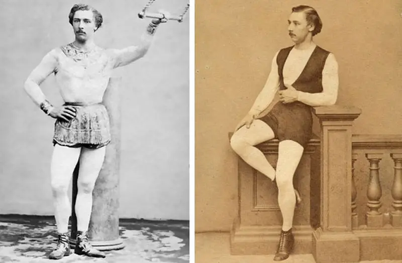 V roce 1867 poprvé vyšla tiskem skladba The Flying Trapeze, kterou na hudbu Gastona Lylea otextoval (a pak ji také interpretoval) britský zpěvák George Leybourne. O 67 let později vznikla dnes už klasická povídka spisovatele Williama Saroyana Odvážný mladý muž na létající hrazdě, inspirovaná refrénem tohoto zaprášeného hitu: „He’d fly through the air with the greatest of ease, that daring young man on the flying trapeze.“ Text písně vyprávěl o skutečné osobě: francouzském akrobatovi Julesi Léotardovi, absolventu práv, jenž si místo advokátní praxe otevřel v rodném Tolouse plavecký areál, kde zároveň cvičil na lanech a kruzích. Časem se stal hvězdou prestižního varieté Cirque Napoléon. Paní a dívky ho milovaly, a zejména jeho přiléhavý úbor, který si sám vymyslel. Léotard zemřel tři roky po uveřejnění písně (v pouhých dvaatřiceti), pravděpodobně na černé neštovice.
