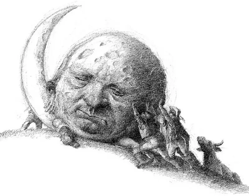 Buď v oněch zvláštně seskupených plochách vidíme tvář, přímo žadonící, aby se jí do oka zapíchla kosmická loď (jak si to v roce 1902 představoval klasik fantaskních filmů Georges Méliès). Nebo v nich po vzoru středověkých mnichů nacházíme obrysy postavy biblického Kaina, odsouzeného za historicky první bratrovraždu k věčnému obíhání Zeměkoule. (Což zachytil Dante ve svém Pekle.) Případně si ve shodě s Talmudem myslíme, že skvrny na Měsíci mají podobu praotce Izraelitů Jákoba, syna Izákova. Podle čínské mytologie žije na Měsíci bohyně Čchang-e, kterou sem doslova vystřelil nápoj nesmrtelnosti, anžto si pro jistotu dopřála dvojitou dávku. Bohyni dělají společnost měsíční králíčci, o nichž vypráví též dávná aztécká pověst.