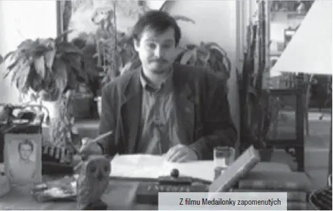 Šestajovicích a literární kritik Jan Nejedlý (1971) známý dobře svým inteligentním a zábavným psaním o literatuře z Nových knih, Tvaru, Portálu české literatury nebo aktuálně z kulturní rubriky Hospodářských novin, 1_Jelinek1se dal loni naverbovat k filmu. Jeho scenáristický a režisérský debut se stopáží 11 minut 18 vteřin, prezentovaný v soutěži Aerokraťas 2011, se jmenuje Medailonky zapomenutých – a dává tušit pokračování, možná rovnou seriál. První díl, realizovaný na podzim loňského roku, je věnovaný předčasně zesnulému a neprávem zapomenutému Jáchymu Jelínkovi, „básníku s duší kočky“. Povaha jeho literárního angažmá (verše namíchané z odkazů avantgardy, experimentu i konceptuální tvorby) stejně jako filmové zpracování jeho „pohnutého osudu“ se pak vinou v duchu Jáchymova slavnějšího jmenovce Harryho, který za první republiky prodal Američanům Karlštejn – čili jde o mystifikaci. A to mystifikaci velmi trefnou. Do čeho se strefuje? Do objektu i subjektu. Utahuje si jak ze současné, „postmoderně nesrozumitelné“ poezie a jejích „zasvěcených“ kritických reflexí, tak z muže, který to celé poskládal dohromady a natočil. Jáchym Jelínek, představený hned úvodem na zažloutlé fotografii, je totiž nápadně podobný Janu Nejedlému před dvaceti lety. Básníkův příběh sice není ukotvený pevně v čase, ale jde zřejmě o 90. léta minulého století. O Jáchymovu dědečkovi, který prošel koncentračními tábory Mauthausen, Osvětim a Bullerbyn, referuje ve filmu Martin C. Putna. O Jáchymovu otci, který byl „vězněm svědomí“ (měl na svědomí loupežné přepadení a několik defraudací), vypráví stylizovaný průvodce pořadem (toho si zahrál Viki Shock). Na 1_Jelinek2Jáchyma zavzpomíná v několika vstupech jeho hudebně nadaná babička, která hovoří čapkovskou češtinou a nesnáší výrazy jako „schweinehund“ nebo „helemese“. Jelínkův život pak ilustruje jeho dílo, podané ve střídmých ukázkách recitátorem, případně sehrané klánovickým ochotnickým souborem Veselé klimakterium. Film má blízko ke kabaretu nebo estrádě. Zábava je to ovšem příjemně sofistikovaná, podobně jako Nejedlého psaní. Divák si musí snímek pustit dvakrát, možná třikrát, aby ocenil všechny narážky, citace, parafráze a vrstevnatý absurdní humor, který nese Medailonky zapomenutých od úvodního záběru přes anonci Jelínkova home-made-videa Vykropený kropič po závěrečné titulky. Při opakovaném sledování se sice vyjeví i kazy, jako třeba statická kamera nebo ledabylý střih, který protahuje některé obrazy za mez únosnosti – ale klady nadále jasně převažují. Jáchym Jelínek totiž vzkazuje přes svého režiséra ze záhrobí jedno: umění je uměním jedině tehdy, pokud se dokáže vysmát nejen době – ale taky samo sobě.