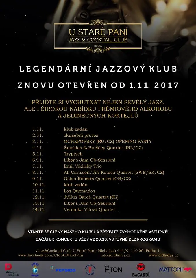 Po téměř roční přestávce se do hry vrací legendární pražský jazzový klub U Staré Paní. Slavnostní zahájení nového pódia jazzové scény v Praze bude 3. listopadu 2017.