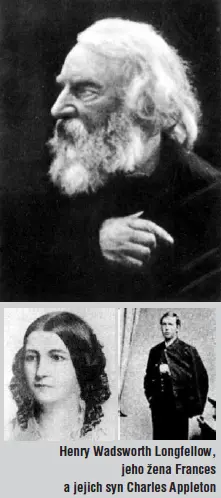 Stárnoucí klasik se zachmuřil. Ani ne před dvěma lety přišel za tragických okolností o ženu. Tehdy v onom horkém letním dni se stalo cosi velice podivného: zatímco Henry dřímal, manželka Fanny ukládala na památku do obálky vlásky jednoho ze svých šesti dětí. Když chtěla obálku zapečetit horkým voskem, vzplály jí šaty. Longfellow se okamžitě probral, hodil přes ni kus látky a snažil se plameny uhasit. Nebohá Frances však už byla ošklivě popálená. I když se časem vyrojilo plno teorií, co přesně se tenkrát mohlo stát, úplnou pravdu nikdy nikdo nezjistil. Prý nemuselo jít o žádný vosk, Fanny na sebe mohla zvrhnout hořící svíčku. Anebo snad spadla ze stolu zápalka a sama se rozžala, jak tvrdila básníkova nejmladší dcera Annie? Tak či tak, Longfellowova choť upadla do bezvědomí a následujícího rána, jen co stačila z posledních sil požádat o šálek kávy, zemřela. Sám Henry se při pokusu zachránit ji tak popálil, že nebyl schopen zúčastnit se pohřbu. Aby skryl svá poranění, do konce života se už neholil. Divoký plnovous se stal jeho poznávacím znamením.