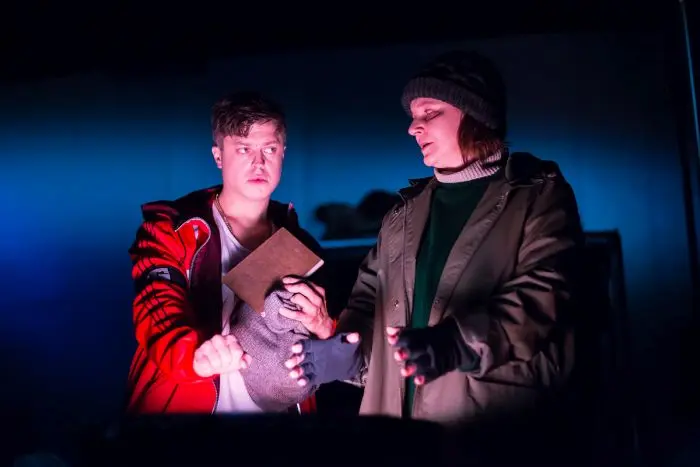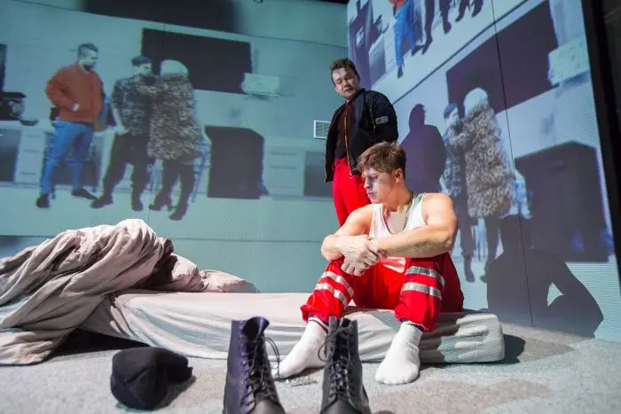 Slavný utopický (či moderněji řečeno dystopický) román významného reprezentanta a vlastně jednoho z otců americké sci-fi Raye Bradburyho můžeme považovat za jeho nejnaléhavější dílo. Vždyť 451 stupňů Fahrenheita z roku 1953 není žádná fantastická vize daleké budoucnosti, charakterizovaná nebývalými vymoženostmi dosud neznámých technologií, ale krutý obrázek totalitního režimu, kde největším prohřeškem je vlastnit jakékoliv knihy. Smutný hrdina příběhu, požárník (v reáliích této novely požárníci ohně zakládají, nikoliv hasí, na byvší význam profese si vlastně už nikdo nevzpomíná), likviduje pozůstatky knih v některých domácnostech. Často bývá zapálen i dům, v němž čističi „kontraband“ naleznou. Občané, žijící ve společenství, které očekává vypuknutí válečného konfliktu, případné „knihomoly“ bez jakýchkoliv výčitek svědomí udávají. Hlavní postava Bradburyho díla, požárník Guy Montag, se ovšem zaplete s „disidenty“. Ke knihám se dostane přes Clarissu McClellanovou, patřící do komunity, uchovávající „paměť knih“. Filmová verze Francoise Truffauta z roku 1966 nadějeplnou existenci této skupiny podtrhla, a scéna, v níž si její členové přeříkávají slavné texty, které se naučili zpaměti, se do mě vryla při pololegálním zhlédnutí filmu za minulého režimu jako značně povzbudivá. Tento rozměr ovšem inscenace mladého režijního a dramatizátorského tandemu Kristýna Kosová-Adam Svozil postrádá. Nemíním to jako výtku, vždyť žijeme v jiné době, v níž sice nehrozí likvidace knih, nastává však zával banalitami a lživými informacemi (nejen) na sociálních sítích a zabírá u značné části populace, ne-li v jisté míře u populace celé. V dramatizaci díla dominuje dnešní zhrublý jazyk, primitivnost požárníků i jejich dámských protějšků (manželek, milenek) se omezuje na úderné promluvy ze slov, nepřesahujících často dvě slabiky (tak například Guyův velitel, kapitán Beatty, se s ním po skončení likvidátorské šichty pravidelně loučí přátelským: „Zdar jak sviňa! Pocem, ty zmrde! Byls dobrej – tak čus!“)