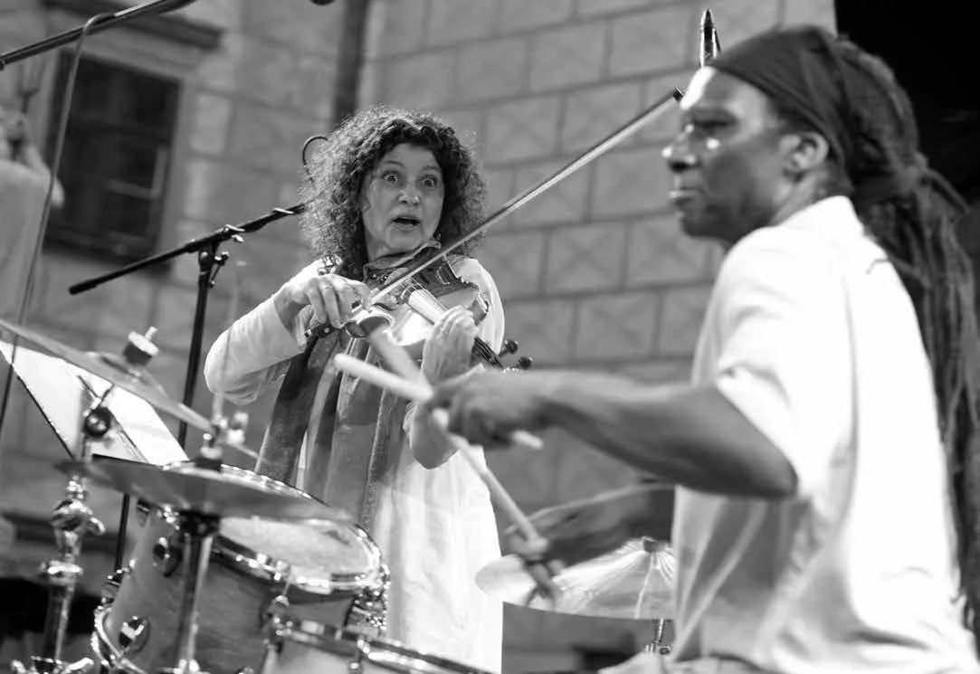 Ivu jsem potkal před sedmi lety na festivalu v Palau, který pořádal právě Paolo a jeho bratr Nani. Ti nás dali dohromady. Na hraní s Ivou je krásné, že má obrovský smysl pro kreativitu a práci s hlasem i houslemi. Také se mi líbí, jak dokáže využívat prostor na pódiu. Ona je směsicí mnoha hudebních světů, což jsem já taky, a proto nám to spolu funguje. Iva má pozoruhodný způsob, jak propojovat odlišné lidi, kteří by se bez ní možná ani nepotkali, a vytvářet prostor, v němž může vzkvétat to nejlepší z každého jednotlivce. Čikori je úžasná kapela, kde všechno skvěle šlape a jsou v ní velice citliví muzikanti, kteří zvládnou souhru mezi formou a otevřeností. A obojí tu má stejnou váhu. Na druhou stranu pokud to dobře chápu, tak s Clarinet Factory vystupovala Iva poprvé. Protože jsem při tom vystoupení nehrál celou dobu, měl jsem možnost je poslouchat a znělo to skvěle. Když posloucháš Clarinet Factory, tak se jednoduše musíš zamilovat do klarinetu. Tenhle nástroj se mi vždycky líbil, ale tentokrát jsem jeho zvuk ocenil mnohem víc. Oni vycházejí z velmi silné klasické hudební tradice a tréningu, ale jsou také skvělí improvizátoři. Nechtěl bych, aby se zdálo, že chci tyhle dvě věci nějak separovat, ale chci poukázat na to, že jako kapela i jako hráči samotní jsou v obou směrech velice dovední. To nedokáže každý. A v tomhle případě vlastně nezáleží na konkrétním žánru hudby. Zkrátka je to vření kreativní imaginace, která překračuje hranice obvyklých konvencí.