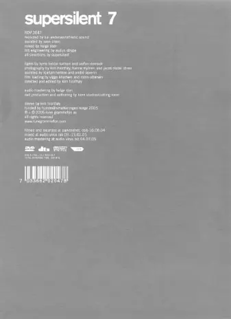 DVD Supersilent 7 (Rune Grammofon, 2005) lze považovat za živé dvojalbum. Vzniklo na jediném koncertě a svou téměř dvouhodinovou stopáží by si klidně zasloužilo označení 7 + 8. Nepřítomnost obvyklých DVD vymožeností, jako je menu či bonusy, nás vtáhne rovnou do děje. Sledujeme nástup kapely na scénu, pauzy mezi skladbami i vytleskání přídavku. A nejkrásnější je, že konečně nejsme posluchači pečlivě vyselektovaného materiálu, ale celého vystoupení a vidíme, jak to vše vzniká.