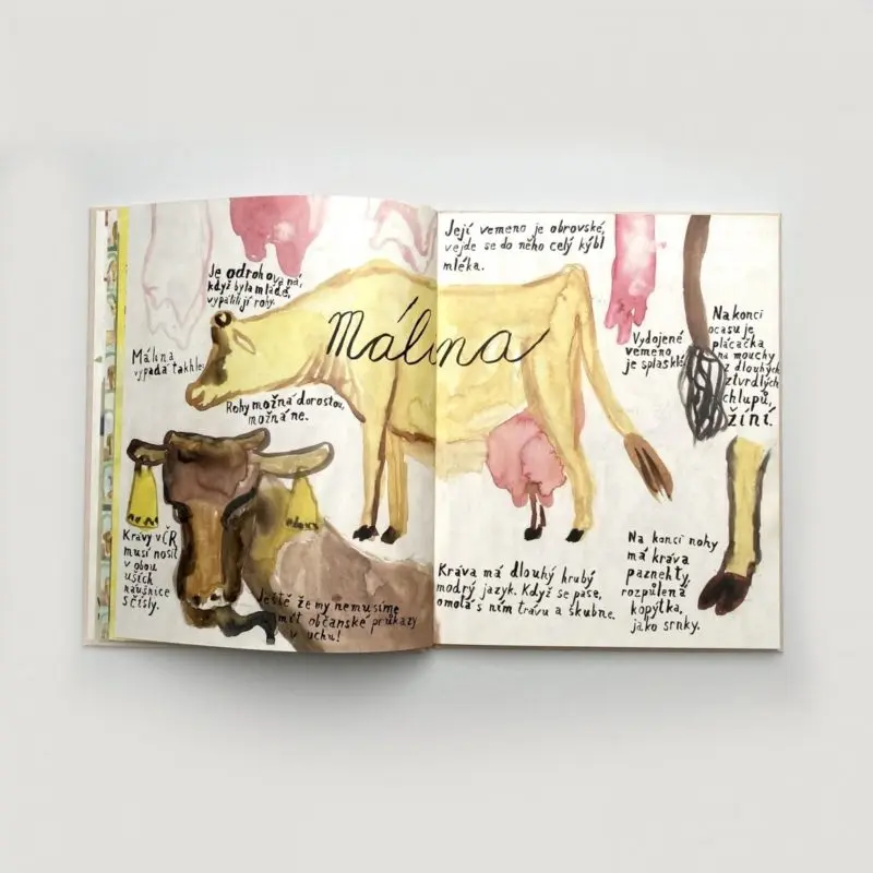 Malířka Říčanová se krávy nejdřív štítila, ale pak s ní vplula do symbiózy a vše potřebné se naučila. Knížka má nezanedbatelný edukativní potenciál, protože ve stylu někdejších dětských encyklopedií popisuje předměty a postupy, které se při chovu mléčné krávy používají. Součástí je i dbaní na přirozený životní prostor krávy, odlišný od velkochovů s odebíráním telat, uvazováním a jinými velkoagrárnickými libůstkami.