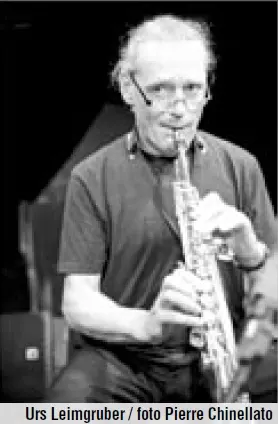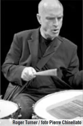 Britský bubeník Roger Turner nikdy netoužil po velké bicí soupravě a vy stačí si s málem, které ovšem značí mnoho. Je schopen skvěle komuni kovat s vokalistou Philem Mintonem, při doprovodné seanci s francouzský mi tanečníky, a svůj improvizační ta lent dokázal s mnoha dalšími umělci. Namátkou jmenujme kytaristu Johna Russella, klavíristu Stevea Beresfor da a v neposlední řadě také hráče na hračky a objekty, v Dánsku žijícího Če cha Martina Klappera. Švýcarský saxofonista Urs Leim gruber nepotřebuje silné sidema ny, ale vystačí si klidně sám, ačkoliv jeho nejsilnější potenciál prokázalo vystoupení s legendárním kontraba sistou Barrem Phillipsem a fenomenál ním klavíristou Jacquem Demierrem v rámci Free Jazz Festivalu v Kaštanu.