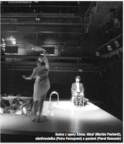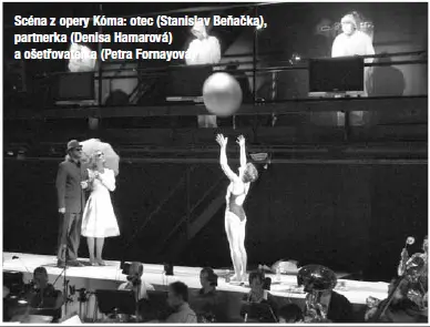 možná nám nepomůže ani procitnutí. Kóma je Burlasova třetí opera. První, Ružové kráľovstvo (1985–86), nikdy nezazněla; druhou, Údel (2000), označil autor za masochistickou. Třetí vznikla na zakázku Slovenského národního divadla, které ji uvedlo v premiéře 24. listopadu loňského roku (režie: Rastislav Ballek; scéna: Tom Ciller; dramaturgie: Vladimír Zvara). Dočkala se tří repríz, další dvě ji čekají letos v dubnu a květnu. „Osamelosť zázrakov je stále väčšia a väčšia.”