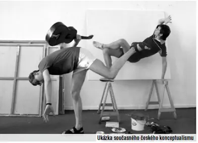 Jako odstrašující příklad takového trendu posloužila loni výstava Začá-tek století. Monografie, co k ní vyšla, se skoro na každé stránce ujišťuje o vlastní výjimečnosti a reprezentativnosti – zdůrazňuje, že sumarizuje to podstatné, co se událo v českém umění po roce 2000. Konceptualisté tu zvítězili na celé čáře. Autor jedné z úvodních studií si sice odvážně posteskl, jak je české umění trapně provinční, ale na výsledný obraz „začátku století“ to nemělo žádný vliv. Ti, kdo hranice českého umění po roce 2000 suverénně překročili, totiž nenašli v knize místo: Jiří Grus, Lucie Lomová, Jaromír 99 s Jaroslavem Rudišem, Jakub Špaňhel, Lubomír Typlt. Jistá společensko-kulturní amnézie je pro konceptualisty vlastně typická: jak v rovině umělecké (v monografii Krištofa Kintery není zmíněný ani Beuys, ani Duchamp), tak mediálně teoretické (žádné nové médium nikdy definitivně nevytlačilo média stará). Čili?