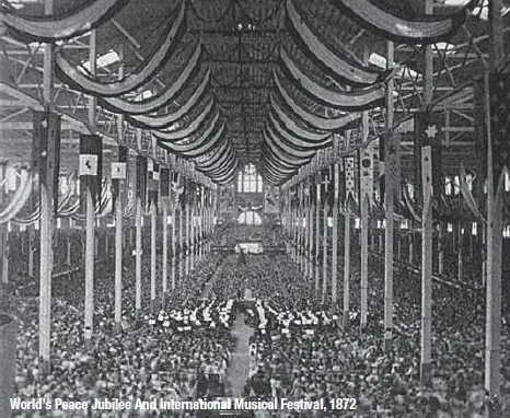 S koncem války dostal Patrick Gilmore od Abrahama Lincolna za úkol uspořádat v New Orleansu, kde v té době sloužil, mírovou slavnost. Po návratu do Bostonu se inspirován úspěchem neworleanských oslav rozhodl zorganizovat další, mnohem velkolepější akci na počest znovunastoleného míru – National Peace Jubilee. Památná událost, která stála na počátku dlouhé řady městských slavností a později i zemských a světových výstav, se odehrála roku 1869 a zúčastnilo se jí přes 12 000 účinkujících (500 v symfonických orchestrech, 500 v dechových tělesech, 11 000 ve vokálních souborech). Hlavním lákadlem byla (kromě přítomnosti prezidenta Granta s jeho kabinetem) návštěva proslulého norského houslisty a skladatele Ole Bulla, o němž Robert Schumann prohlásil, že je „z nás všech nejlepší“.