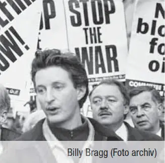 Braggova tvůrčího úsilí a nahraného repertoáru. Myšleny upřímně a v dobré víře, jeho levičácké názory a vize i po letech však z těch jeho starých, ale i novějších nahrávek nevyznívají většinou vyloženě hloupě či vyčichle, a on rozhodně není ani nějakým „salónním bolševikem“ v onom samotným Leninem raženém a derogativním kontextu. Pro zajímavost se podívejte na heslo Billy Bragg na Wikipedii v pasáži o jeho politické agitaci. Byť v této jeho názorové poloze nejsem zrovna jeho duchovní soukmenovec, odedávna mi připadá, že Billy Bragg je především sympatický a chytrý, byť nenapravitelně idealistický donkichotský snílek a romantik. A hlavně je a vždy byl své víře věrný. I když třeba komentoval a vyslovoval se k takovým tématům, jakými jsou dělnická solidarita, širší socialistická platforma v Británii, právo Skotska či Irska na nezávislost nebo když volal a volá po nutnosti přivést k osobní odpovědnosti zkorumpované britské politiky či nechutně přeplácené investiční bankéře. Tedy v samotné Británii, kde navíc Labour Party historicky měla a má hlubokou tradici, kořeny a voličskou podporu. Ale zase. Neodpusťte mu to, když v jiné své staré skladbě ze stejné doby s názvem A New England (kazetové kompilační album Back to Basics, ZGODP 8, 1987), s odzbrojující upřímností hlásá: „I don’t want to change the world/I’m not looking for new England/I’m just looking for another girl.“ (Já nechci nijak měnit svět/ani nehledám nějakou novou Anglii/já prostě hledám novou holku…) V roce 1986 Billy Bragg poprvé a naposled ochutnal i komerční
